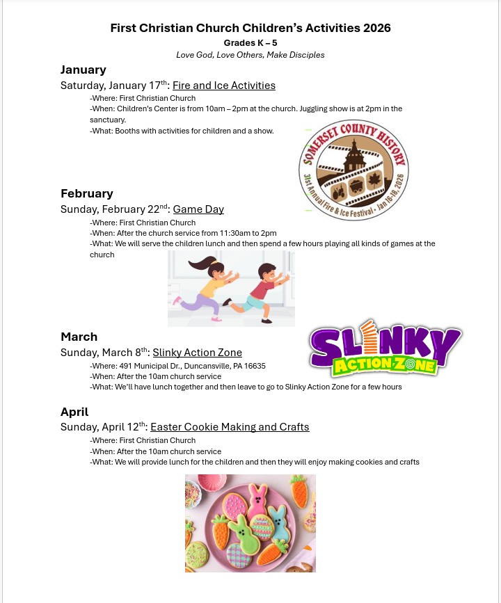 On Saturday, January 17th our church will host Somerset’s Fire and Ice Children’s Center from 10am to 2pm. At 2pm there will be a juggling show for families in the sanctuary.