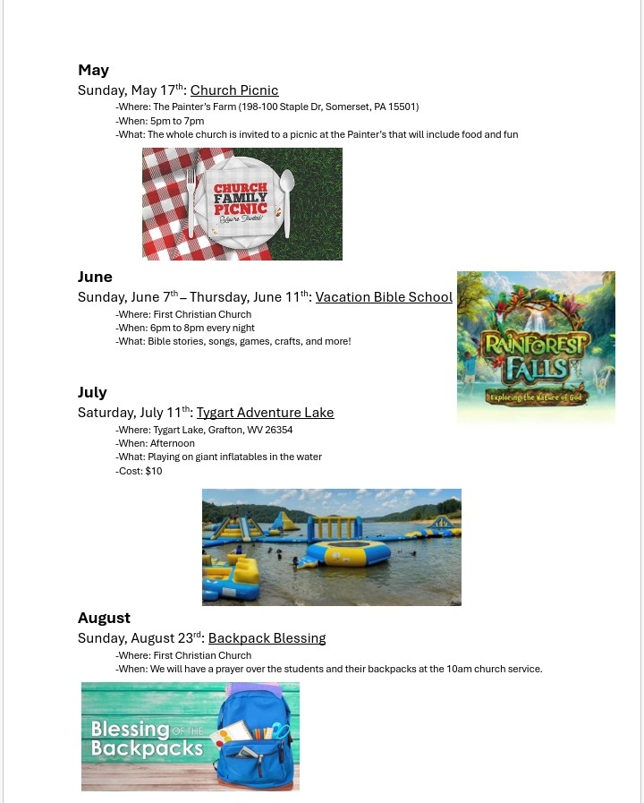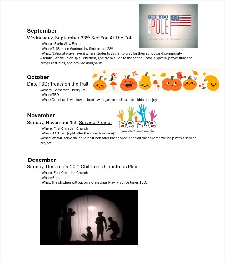 For questions about upcoming events or more information please call our church office at